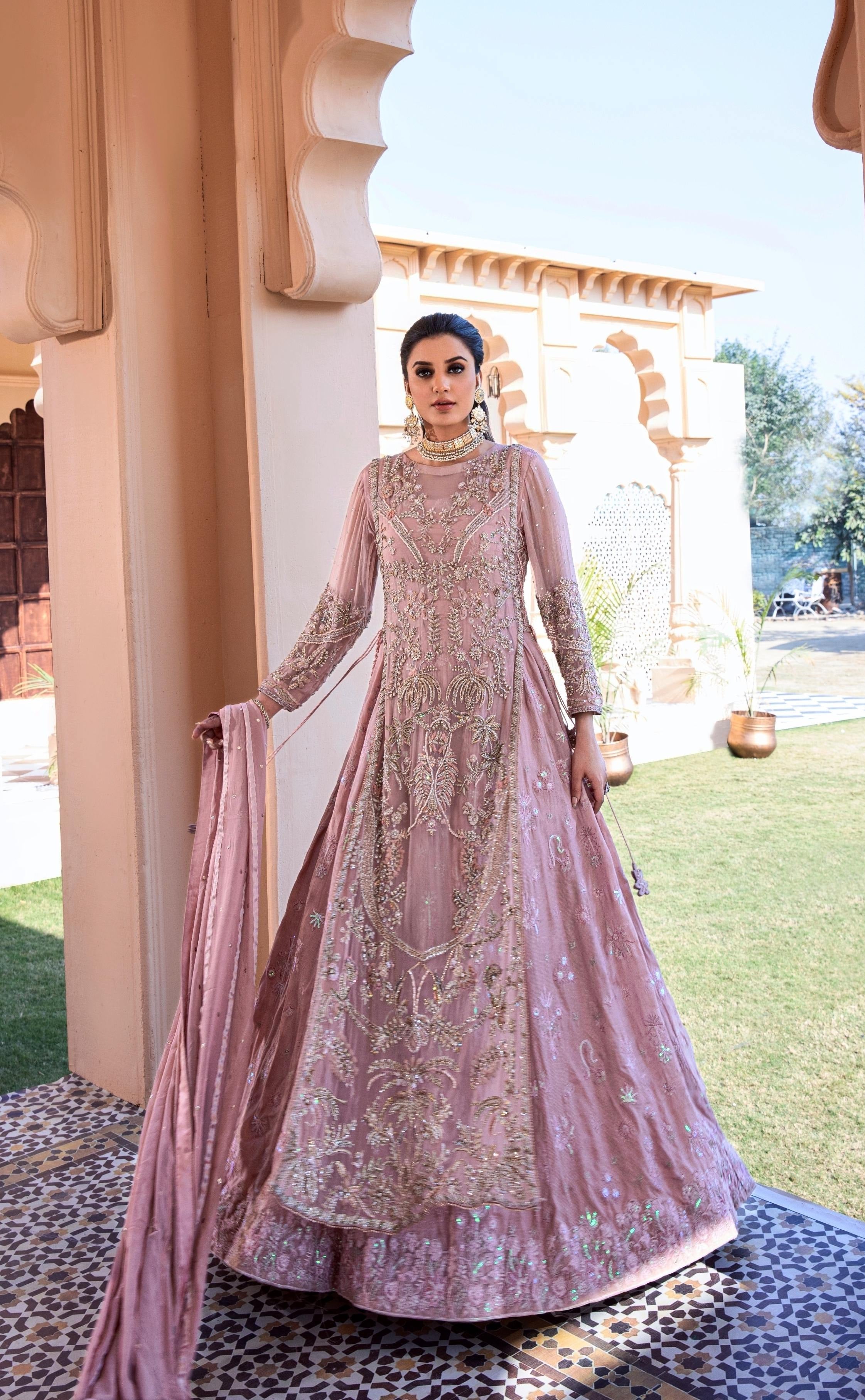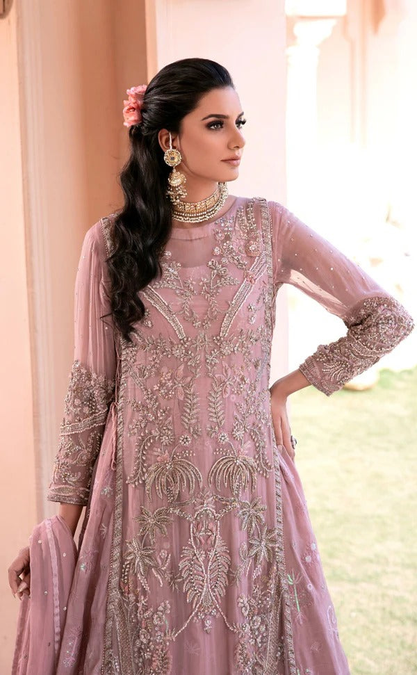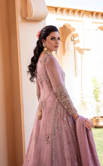 Introducing an exquisite ensemble designed for the modern woman who loves timeless elegance and intricate craftsmanship. This luxurious set features a long, pink organza shirt, beautifully hand-embellished with delicate detailing. The shirt is enhanced with hand tassels hanging from the hem, adding a touch of sophistication and grace to your look.
